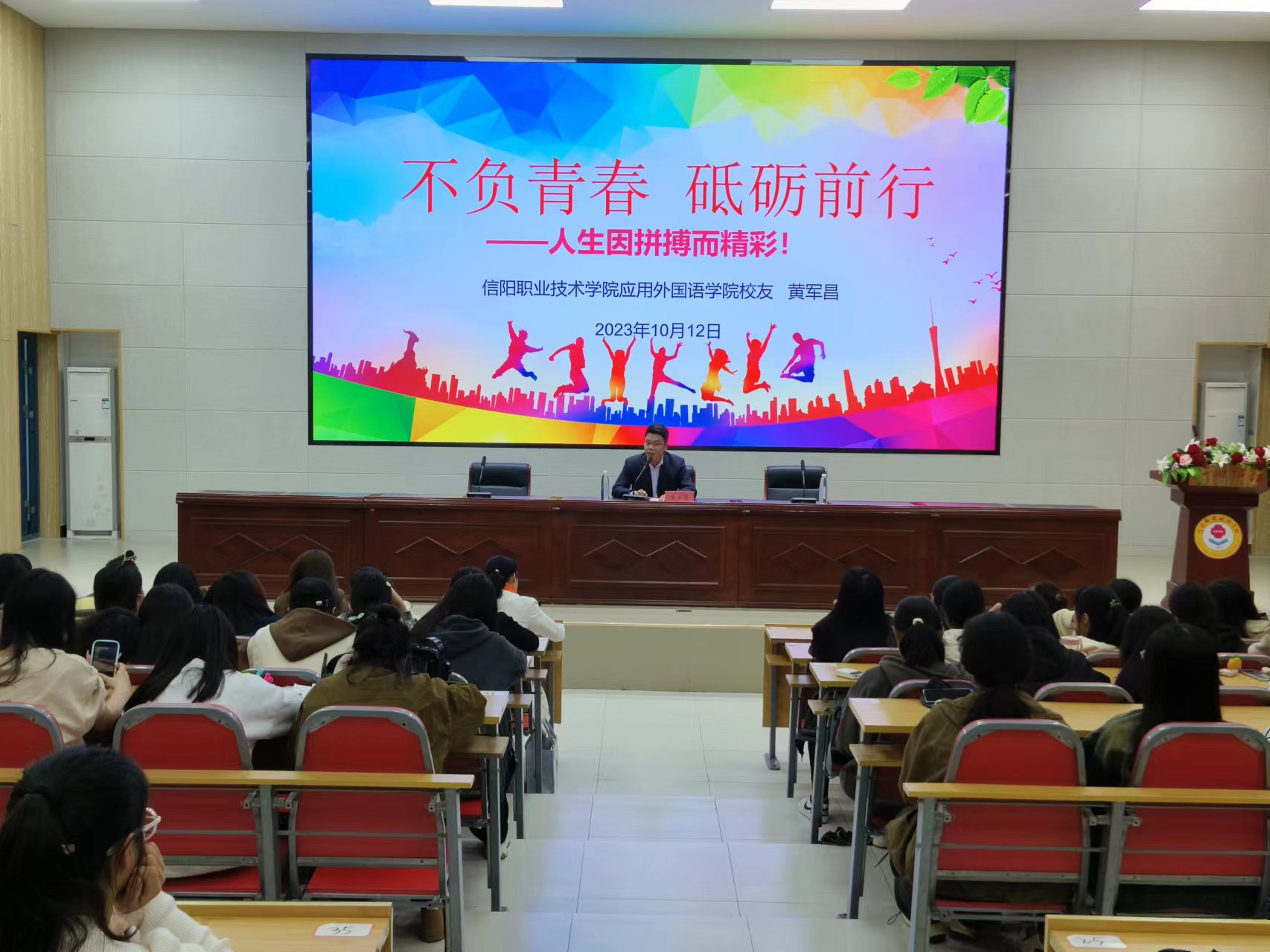 10月12日和14日下午,01级英语教育专业校友黄军昌、04级英语教育专业校友左玲励志报告会分别在医学院报告厅3107举行,2022、2023级商务英语、英语教育专业全体学生参加了报告会,报告会由党总支副书记张泽锋主持。