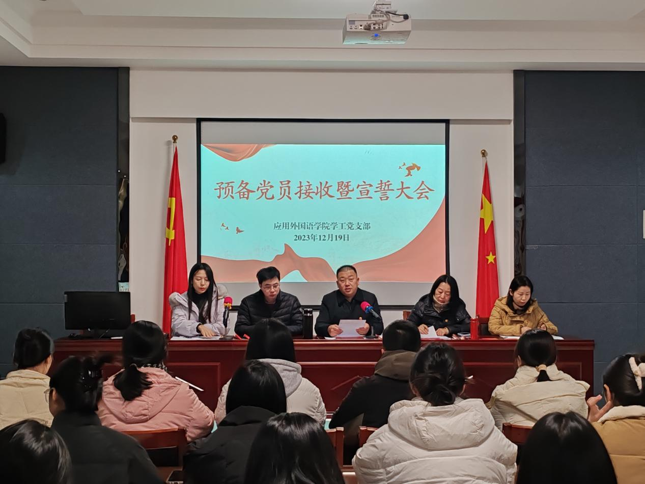 太阳成集团tyc33455学工党支部于2023年12月19日在太阳成集团tyc334552402会议室举行2023年下半年预备党员接收暨宣誓大会,学工支部全体党员参加,会议由党总支副书记、学工支部书记张泽锋主持。