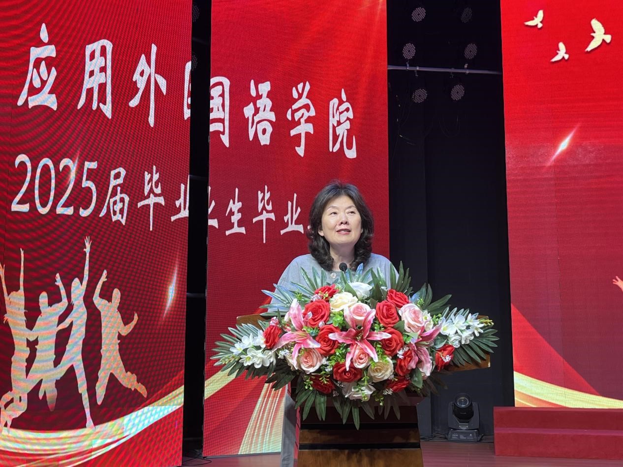 典礼在精美的毕业视频中拉开帷幕。院长刘晓鹂率先向顺利毕业的学子们致以热烈祝贺,她深情回顾了同学们在校期间取得的亮眼成绩,寄语毕业生们要树立远大理想,坚定理想信念,永葆赤诚之心感恩父母、师长、母校的培育。随后,党总支副书记张泽锋宣读了优秀毕业生和优秀实习生名单。2025届毕业生代表王美怡发言,她分享了在校感悟,字里行间满是对师长教诲的感激及校园生活的眷恋。教师代表陈锐鼓励毕业生们在未来的人生赛道上保持学习热情,以拼搏姿态迎接挑战。