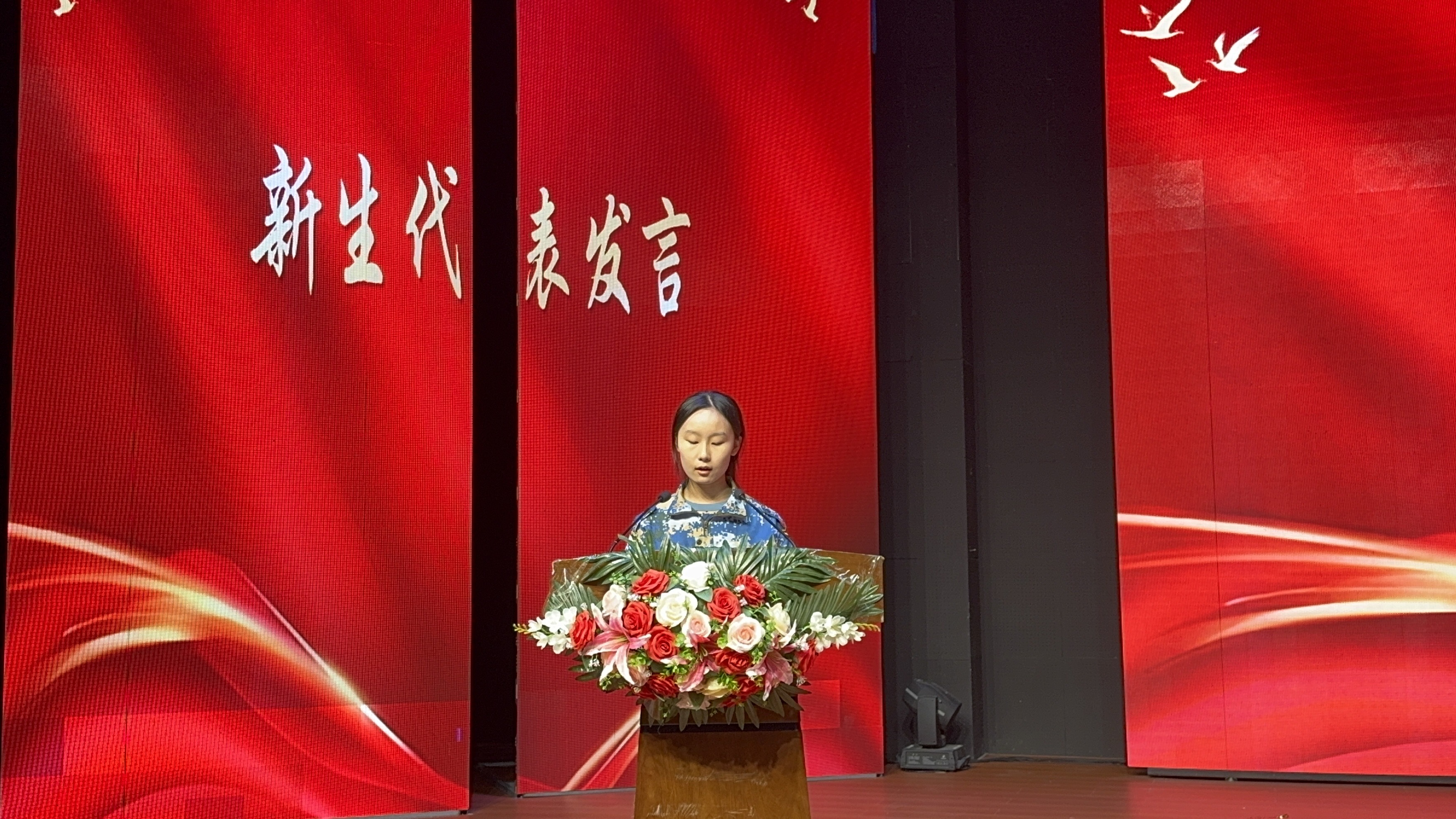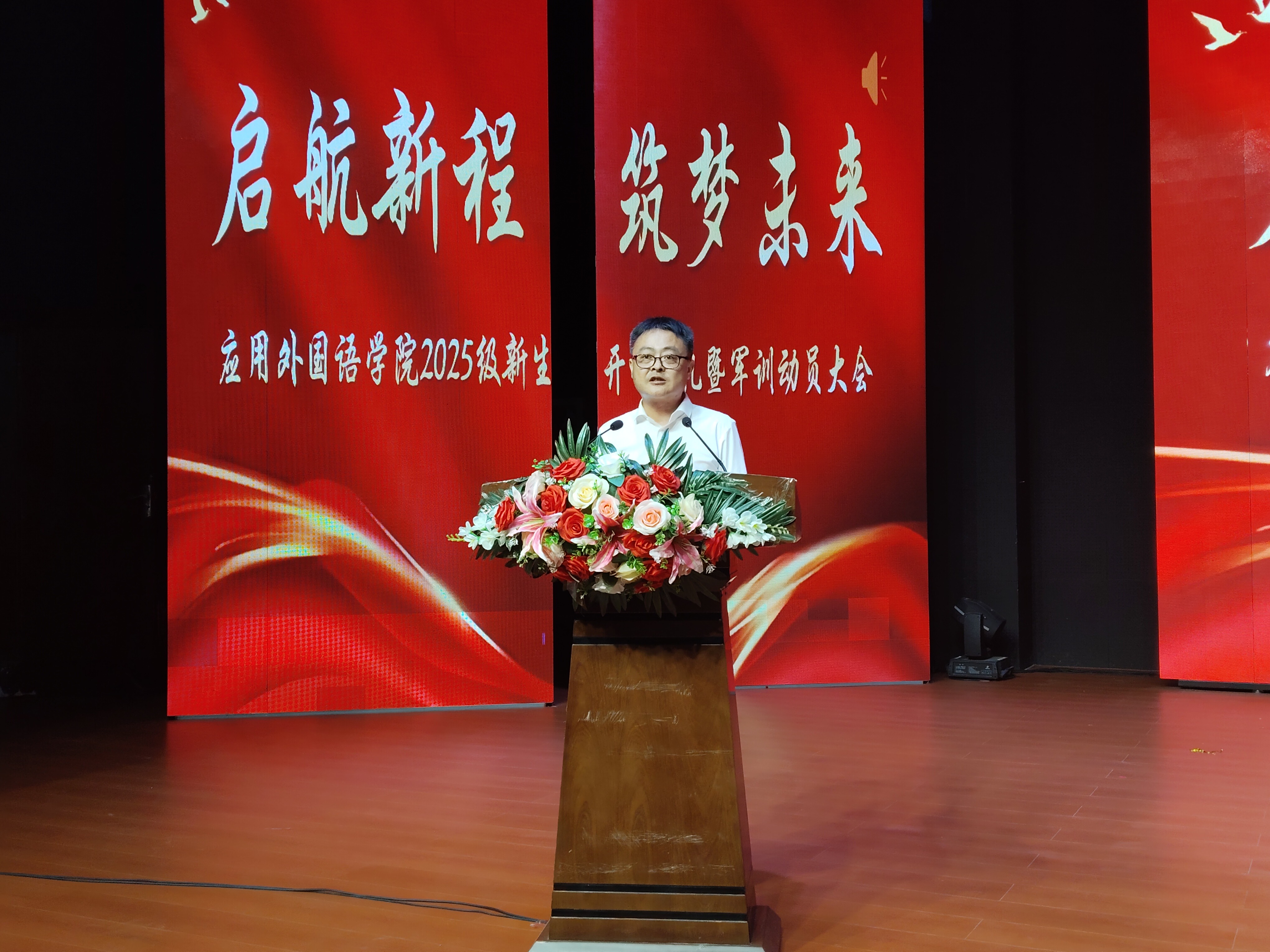 伴随着激昂的国歌声,典礼正式拉开帷幕。纪委书记蒋有红首先致辞,向所有新生提出三点期望:要博学慎思,夯实专业知识;要躬身实践,提升综合素养;要胸怀家国,勇担时代使命。鼓励大家以“启航者”的姿态深耕语言专业,以“筑梦者”的信念传承中外文化,在学习中拓宽国际视野,为讲好中国故事积蓄力量。