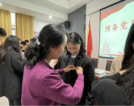 会上,党员发展对象分别汇报了自己的基本情况、党史学习情况和抗疫期间的表现,以及需要向党组织说明的其它问题。然后,入党介绍人介绍对发展对象的培养教育情况,并对其能否入党表明意见。接着,与会学工支部党员对发展对象能否入党展开充分讨论,并进行了无记名投票。大会一致同意接收何心灵等13名发展对象为预备党员。全体党员教师为新党员们佩戴上党徽,并发放党证和党章。徐晓双带领下全体新党员们面对鲜红的党旗进行了庄严的入党宣誓。何心灵、孙春燕分别作为预备党员和入党积极分子代表进行发言。