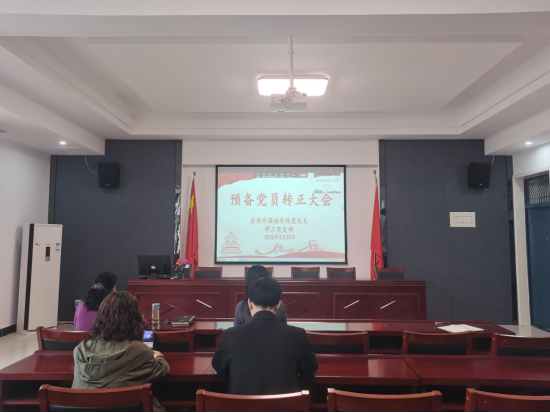 然后,王鹏华等9名预备党员从政治思想、学习生活等方面,向党组织汇报了自己在预备期内的情况,每位预备党员的培养人分别介绍了一年来对预备党员的考察情况,并对预备党员是否能按期转正表明意见。接着,学生党支部宣读了对王鹏华等9名同志的考察报告,经学生党支部全体教师党员无记名投票表决,全票通过了王鹏华等9位同志的转正申请,并形成决议。王鹏华等9位同志分别作表态发言,立志更加努力学习思想理论知识,在学习、生活、工作等各方面更加严格要求,改正不足之处、发扬优点,争做合格党员。学生党支部第二党小组组长刘孟璞带领与会党员同志重温了入党誓词。