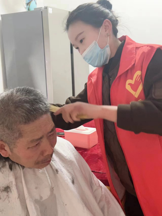 为了更好地服务群众,教工支部党员同志鲁艳华、范军、王斐、齐静静、吴丹丹提前来到永乐社区党群服务中心,跟社区书记了解辖区居民的生活情况。当得知有几位独居高龄、身有残疾而行动不便的老年人,几位党员决定开展上门入户服务。在社区工作人员带领指引下,党员志愿者们走进困难群众家中,为老人们免费理发、整理床铺、打扫屋子、清扫庭院,用实际行动让生活中有困难的群众深切感受关爱和温暖。