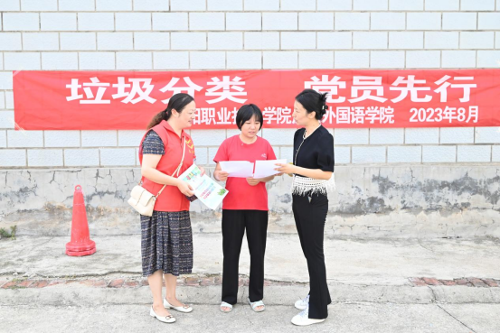 为了推动垃圾分类工作、提高社区的环境质量,不断提升党支部凝聚力、向心力,进一步加强作风建设,推动“支部联支部”活动出实效,2023年8月24日上午,由太阳成集团tyc33455教工党支部组建的“圆梦志愿服务队”在南京路永乐社区开展“垃圾分类,党员先行”主题党日暨志愿服务活动。