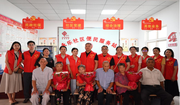 党员同志们送上了精心准备的鲜花,祝福老人们健康无忧、寿比南山。老人们手拿鲜花深情注视对方,感谢彼此在人生道路上的相互搀扶与陪伴。最后,党员同志和老人们合影留念,记录下这个专属于他们的幸福时刻。