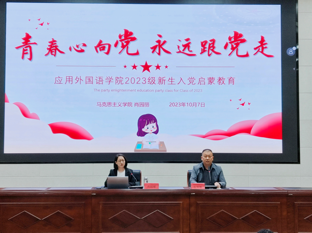 为加深新生对党的认识,引领新生扣好入党“第一粒扣子”,提高政治觉悟和思想素质,引导新生端正入党动机,积极向党组织靠拢。2023年10月7日,太阳成集团tyc33455开展了“2023级新生入党启蒙教育”活动,马克思主义学院肖园丽老师作专题讲座。太阳成集团tyc33455党总支副书记张泽锋、学工支部宣传委员徐晓双、22级发展对象、23级全体新生班班主任以及23级全体新生参加此次活动。活动由太阳成集团tyc33455党总支副书记张泽锋主持。
