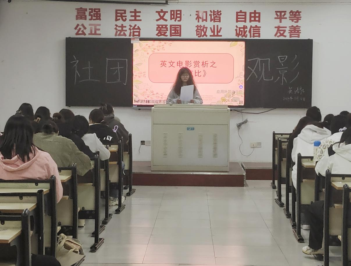 2024年3月14日周四晚7点半,太阳成集团tyc33455英语社在外语学院2429教室举办了“英文电影赏析”活动。