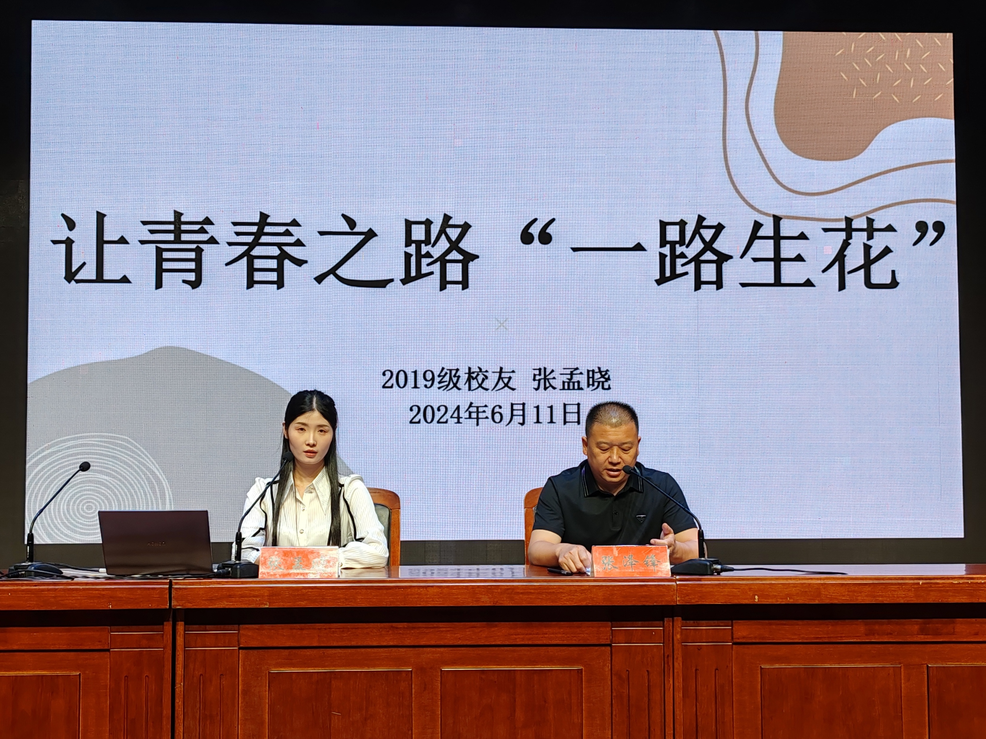 为进一步加强优秀校友的榜样引领作用,激发同学们的学习动力,明确学习目标,更好地规划个人成长道路,太阳成集团tyc33455于2024年6月11日在图书馆报告厅举行题为“让青春之路一路生花”的报告会。学院由党总支副书记张泽锋主持会议,优秀校友张孟晓以及全院学生参加。