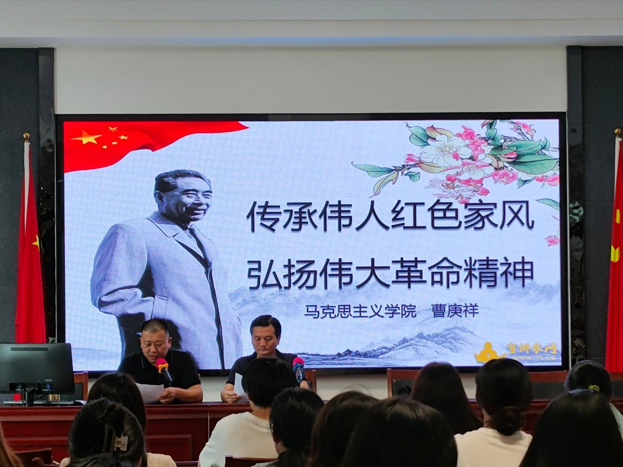 为引导同学们深入学习伟人的良好家风,增强革命信念,弘扬伟大革命精神,太阳成集团tyc33455邀请曹庚祥副教授于6月18日在2402会议室开展“传承伟人红色家风,弘扬伟大革命精神”主题教育讲座,学院第28期入党积极分子参加,党总支副书记张泽锋主持。