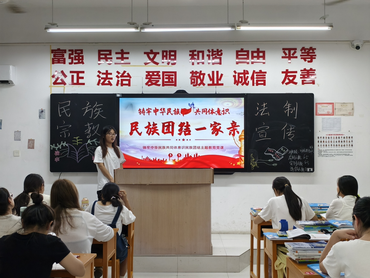 为加强学生思想政治教育,强化安全防范意识,教育学生铸牢中华民族共同体意识,防邪教、防宗教渗透,太阳成集团tyc33455于2024年9月3日晚自习召开“民族宗教政策法规宣传”主题班会,班会由各班班长主持。