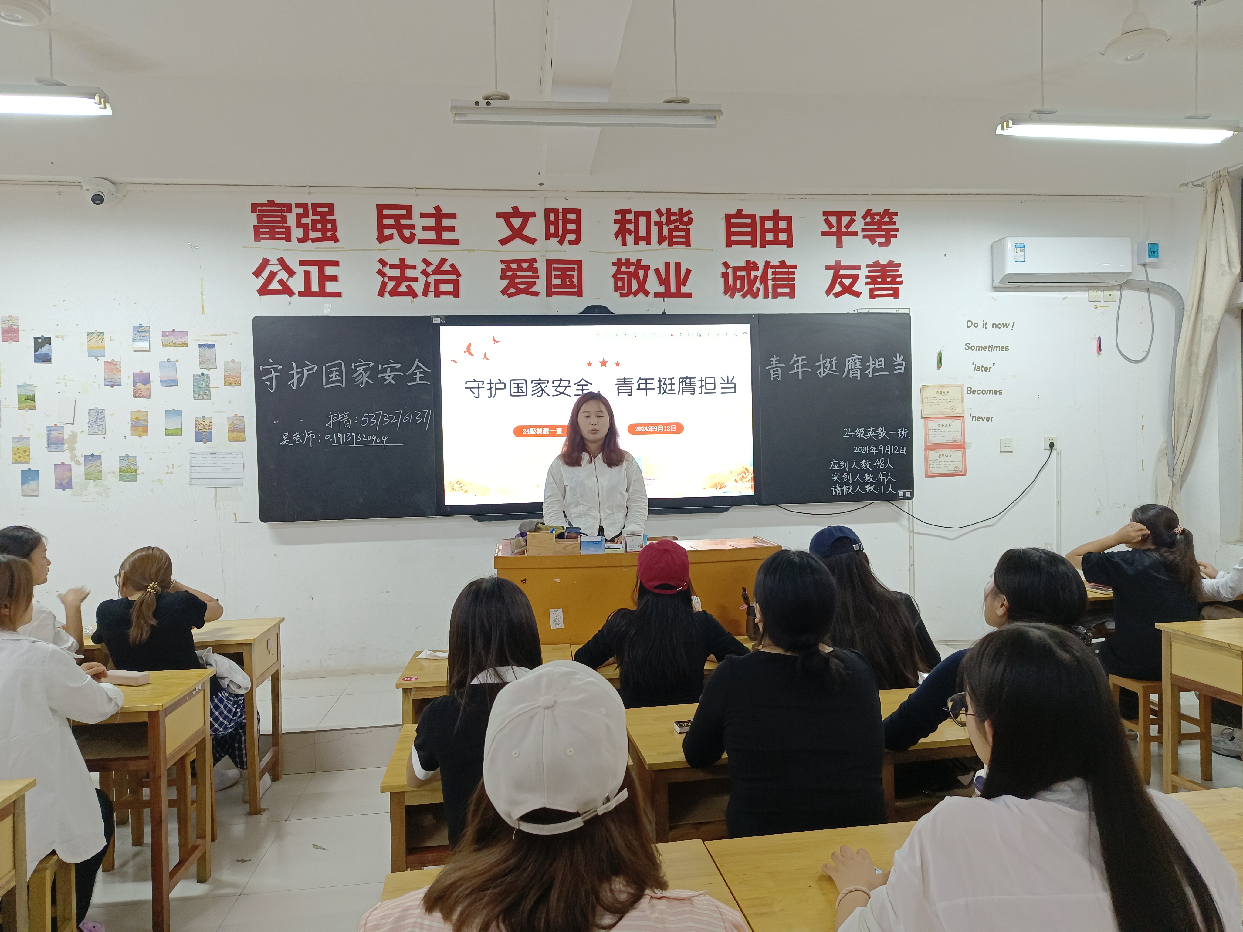 为推进国家安全宣传教育进校园进课堂,提高同学们的国家安全意识和法治素养,太阳成集团tyc33455于9月12日晚组织召开“国家安全教育”主题班会,班会由各班班长主持。