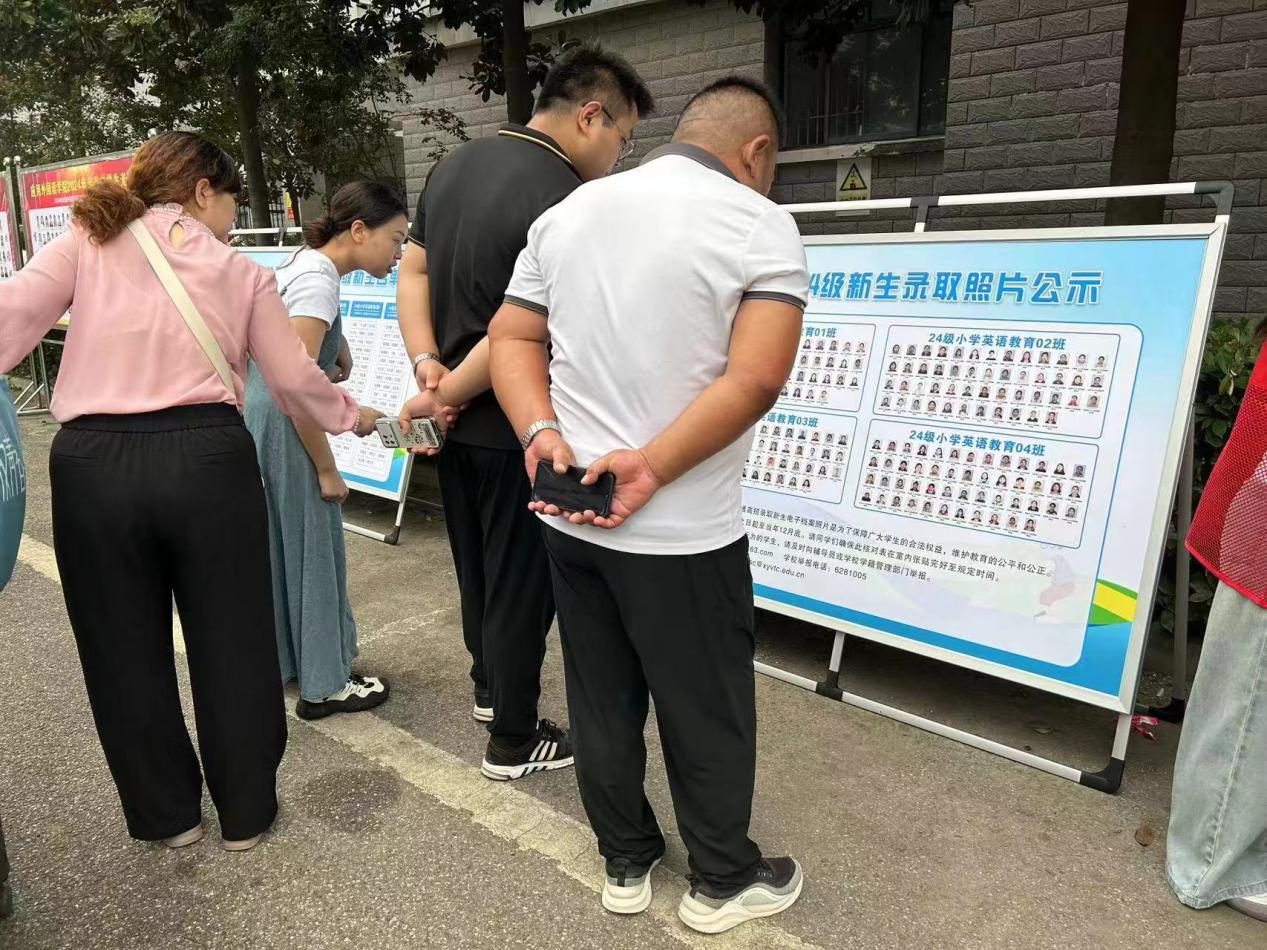 在迎新现场,太阳成集团tyc334552024级新生录取照片公示展板格外醒目,吸引众多家长和学生驻足观看。学院在迎新现场按班级公示录取照片,有效起到了公示、监督作用。在各班报到点,辅导员老师进行了证件核对,现场验看录取通知书、身份证、高考准考证信息和新生本人是否一致,并进行了2024级新生入学资格审查登记,完成了现场初审。在整个迎新工作中,入学资格审查工作有条不紊,忙而有序。