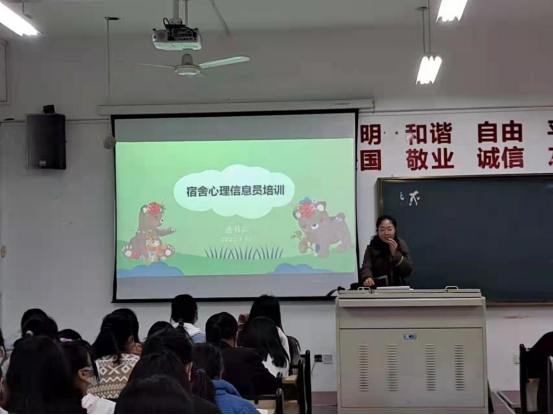 3月30日晚7点,宿舍心理信息员培训于太阳成集团tyc33455A2429多媒体教室准时开始,参加本次培训的是全院宿舍信息员以及班级的心理委员。此次培训内容主要围绕宿舍心理信息员的工作职责、工作方法与侧重点展开,给出了具体可操作性的指导,如宿舍心理信息员及班级心理委员应如何识别心理危机、如何做好陪伴者、面对危机该如何做好监护、危机后应进行何种干预等。盛老师讲得生动易懂,同学们听得专注认真。